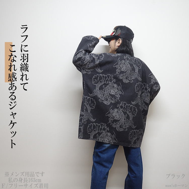 龍柄が織り込まれた神秘性を感じる個性的な羽織りジャケット。