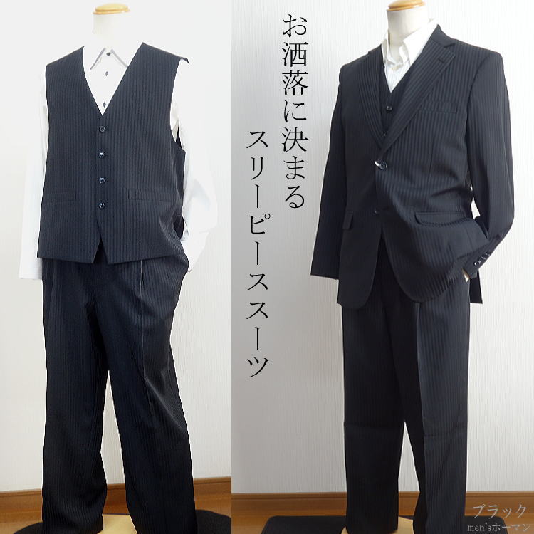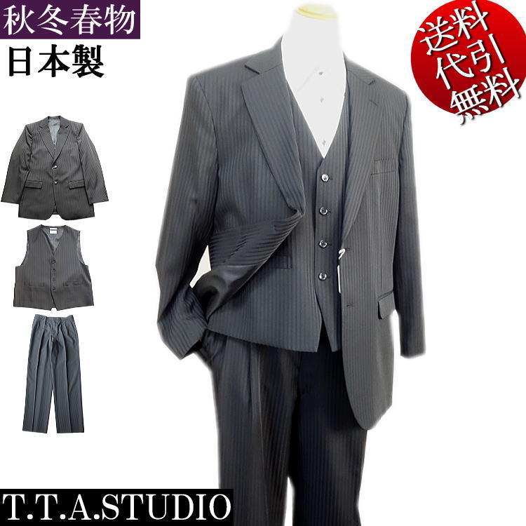 ▼TTA STUDIO!ストライプ柄シングルスーツスリーピース3ピース黒!