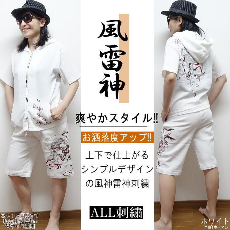 ▼絡繰魂31%OFF!風神雷神刺繍半袖半パンツ上下セットアップ!