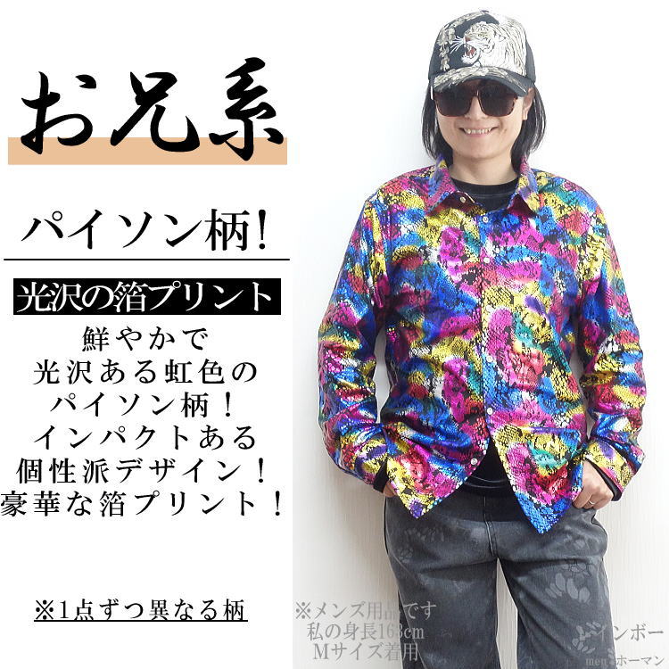 ▼衣櫻21%OFF!パイソン蛇ランダム光沢レインボーシャツ!