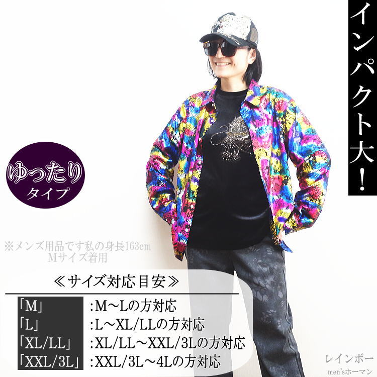 光沢があり豪華な雰囲気が溢れ出るレインボーの長袖シャツ。