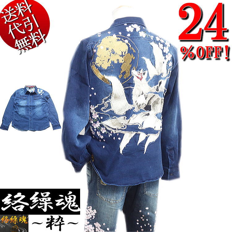 ▼絡繰魂~粋~24%OFF!九尾刺繍カジュアルデニムシャツ!