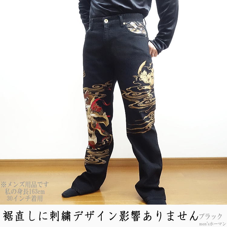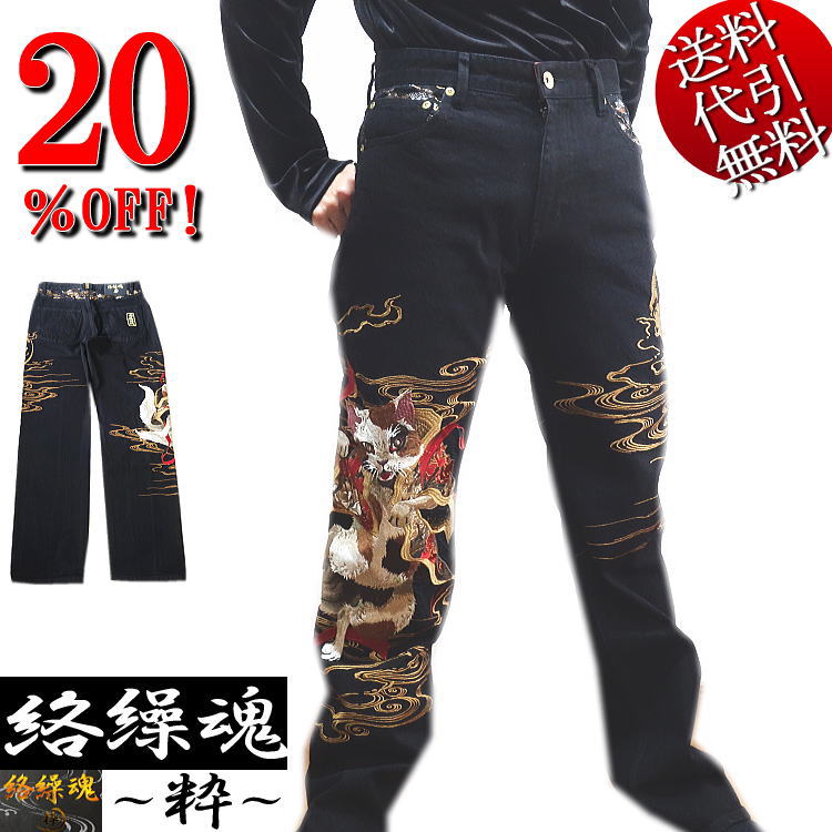 ▼絡繰魂~粋~20%OFF!猫又刺繍ジーンズブラック!