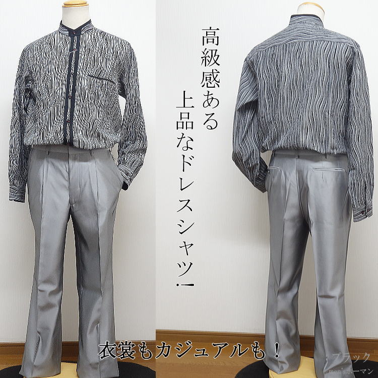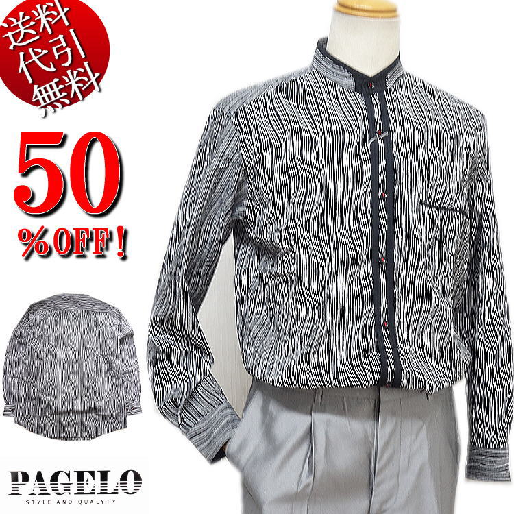 ▼PAGELO 50%OFF!波柄ストライプ柄モノトーンマオカラーシャツ!