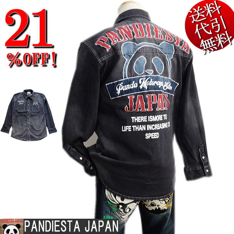 ▼PANDIESTA21%OFF!パンダビンテージ感デニムシャツ黒!
