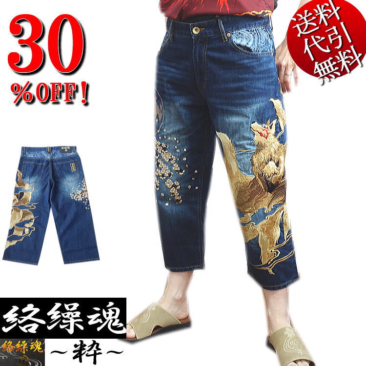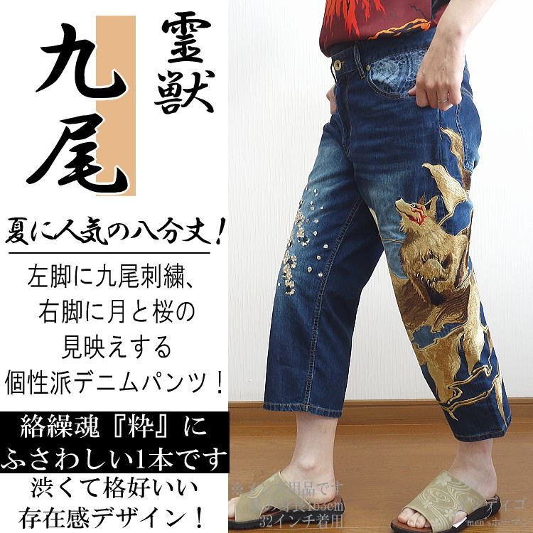 特価セール★絡繰魂粋★九尾刺繍クロップドジーンズ!242233