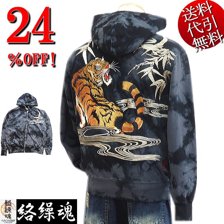 ▼絡繰魂24%OFFSALE!虎刺繍タイダイ染パーカー!