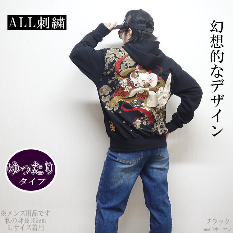 絡繰魂~粋~★猫又刺繍パーカー!261038