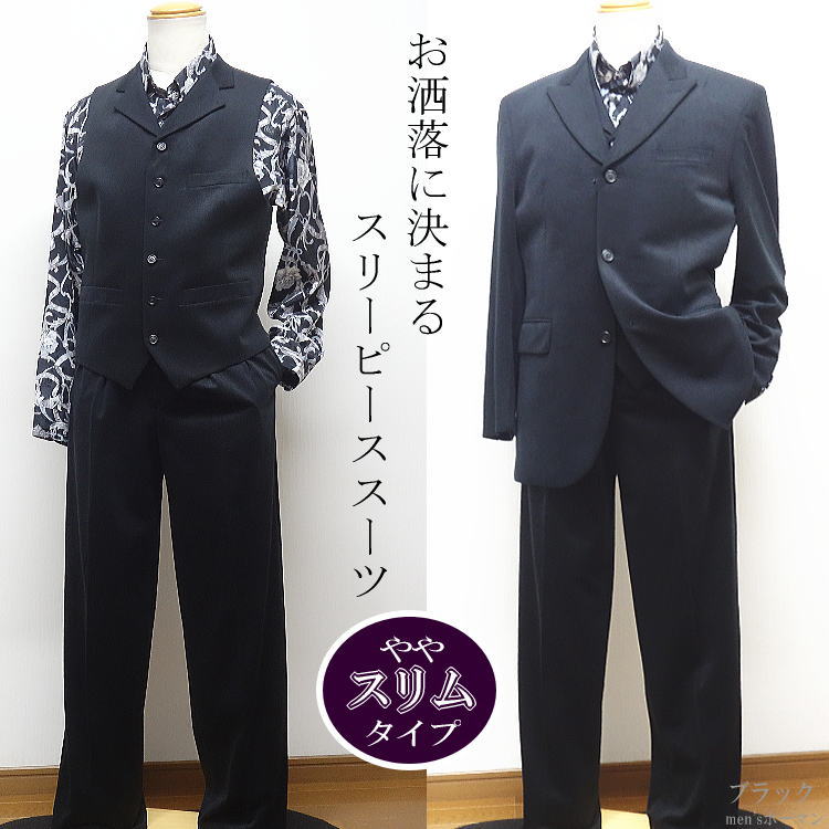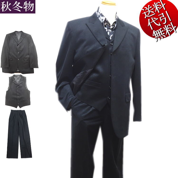 ▼秋冬物!ベロア3つ釦シングルスリーピース黒!