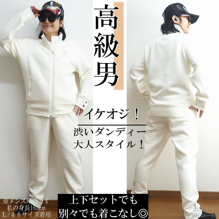 立体感あるふくれニット柄のお洒落なセットアップスーツ。