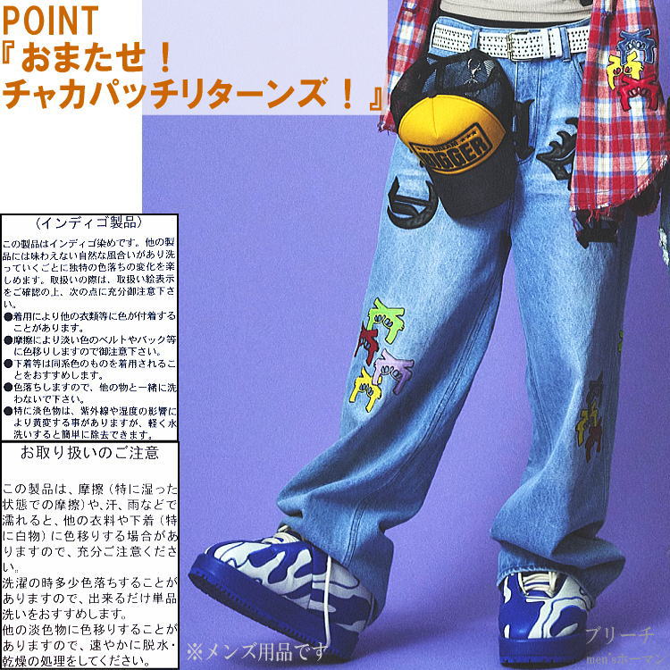 ▼GALFY.E.L.N 20%OFF!チャカパッチ2怒顔アングリーワイドジーンズ!