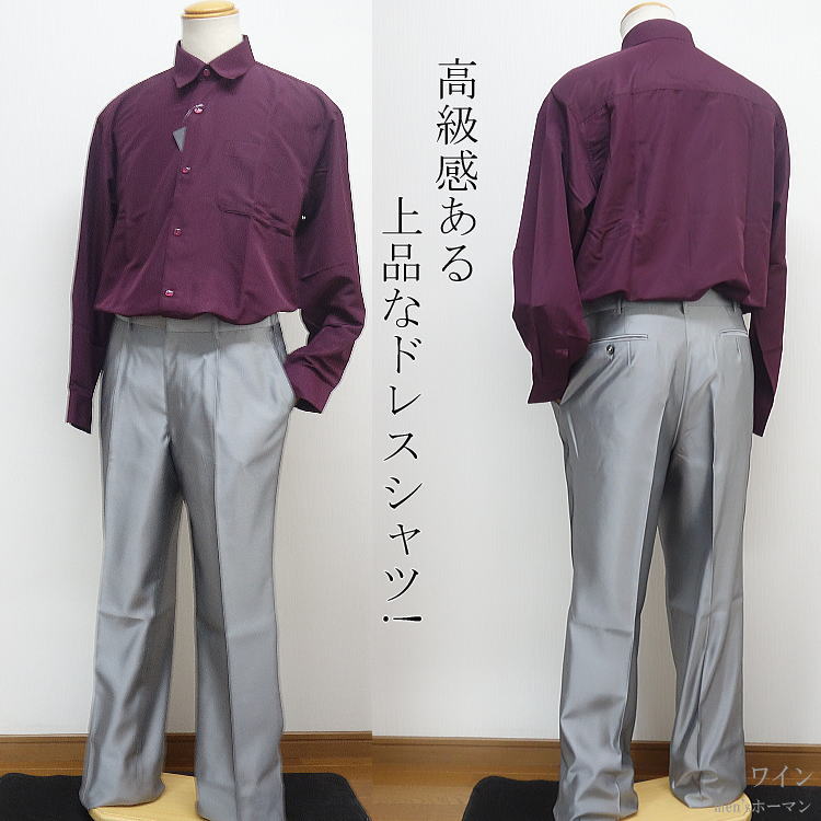 スーツやジャケットにも相性抜群ワインレッドシャツ!pg-8338