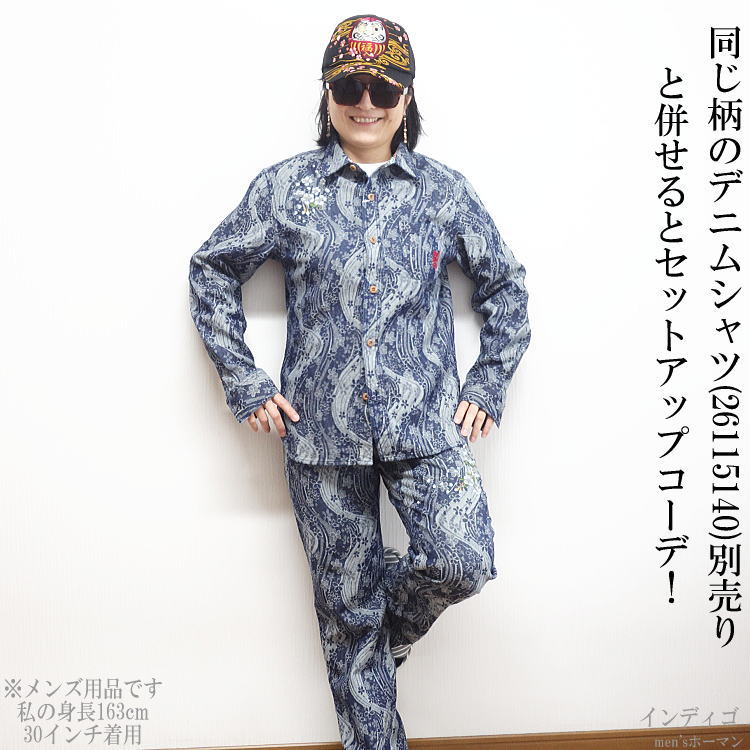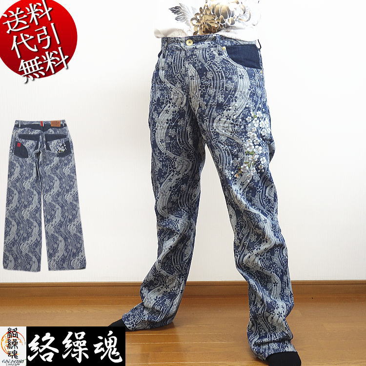 ▼絡繰魂新作!デニムジャガード織桜刺繍ジーンズインディゴ!